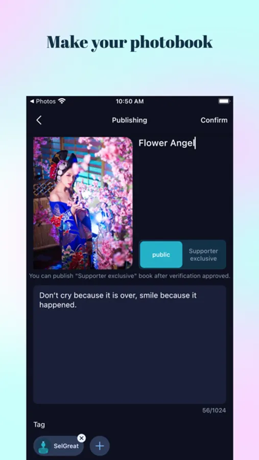 You are able to publish books with all kinds of topcs: cats, food, ... You name it! Just let your works be seen by all the SelGreat users globally in the shortest period of time.