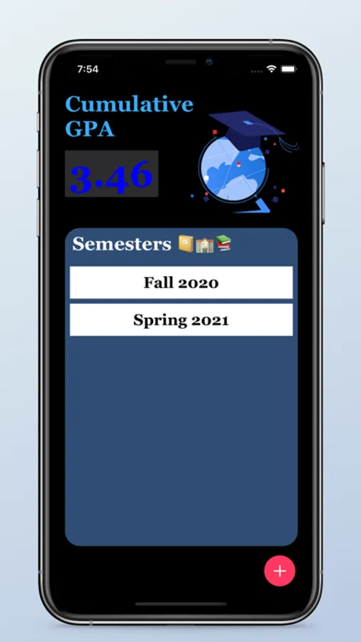 -Tap the round plus button to add a semester