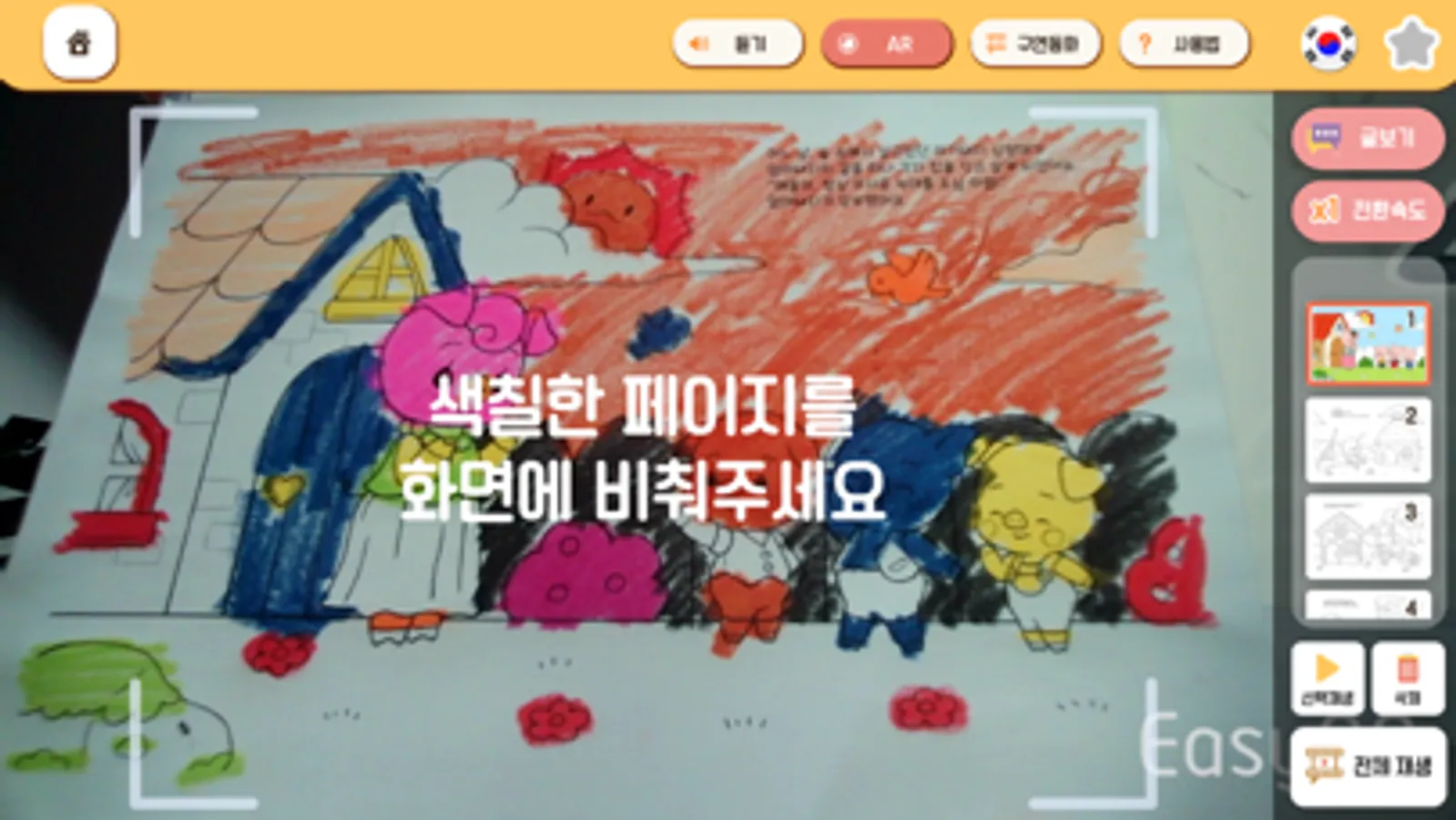 * 자신이 색칠한 동화책을 화면에 비추면 입체 색칠북으로 변해요.
