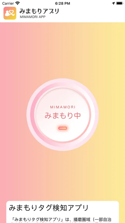 「みまもりタグ検知アプリ」は、播磨圏域(一部自治体を除く)で生活をされる方を対象とした、見守りタグの検知機能を実装したシンプルで利用しやすく、かこがわICTまちづくり協議会の実証事業の一環として実施する見守りタグ検知アプリの開発・広域連携実証実験で利用していただくことを目的としたアプリです。このアプリの検知機能をONにしていただき、見守りタグを持った子どもや高齢者等の近くを通ることで、タグの位置情報をタグの所持者のご家族にお知らせすることが可能です。通勤や散歩に出られるときなどに検知機能をONにしていただき、見守りタグ検知の支援にご協力をお願いします。