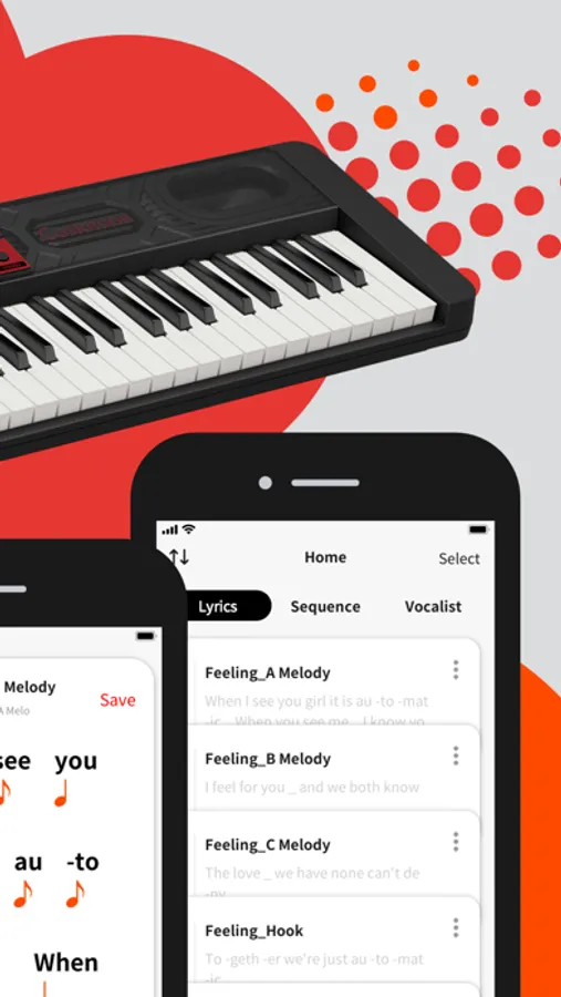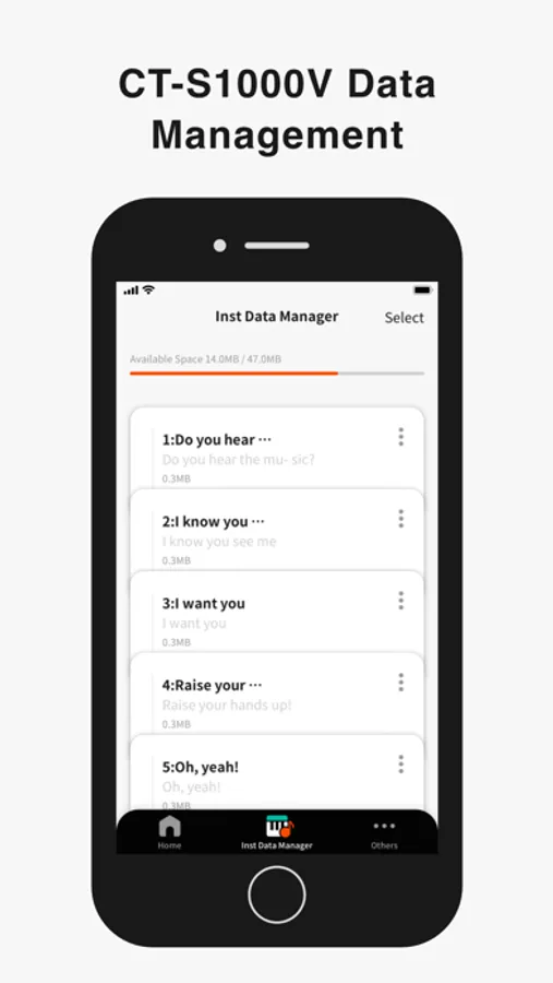 Once the Lyric Creator app is installed on your smartphone or tablet, you can start transferring lyrics, sequences, vocal samples, etc., by connecting your device to your CT-S1000V via a USB cable. While connected, you can also use the app to view how much space is available on the CT-S1000V’s internal drive, delete files, and edit file names. Program files are exported using a proprietary format that enables sharing between CT-S1000V users. You can also import Music XML lyric data and note values from your DAW.