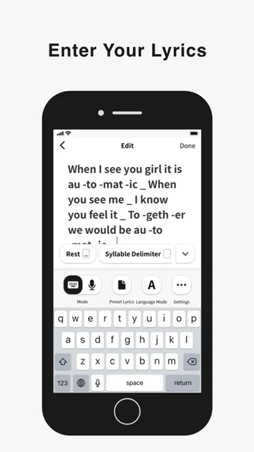 In Phrase Mode, the playback meter of the lyrics is determined by assigning note values (8th notes, quarter notes, etc.) to the individual syllable units and inserting rests. Individual lyric tones include tempo data that can be adjusted via the CT-S1000V itself. Tempo can also be synced to the MIDI clock from your DAW or other external MIDI device to ensure that your vocal phrasing always remains in time regardless of how adventurous you get.