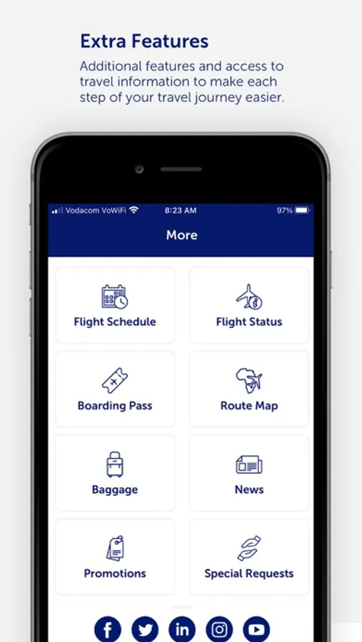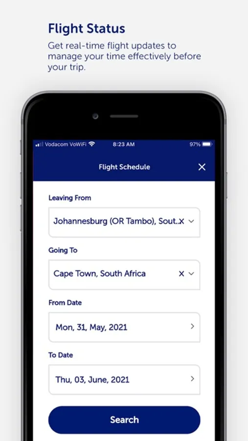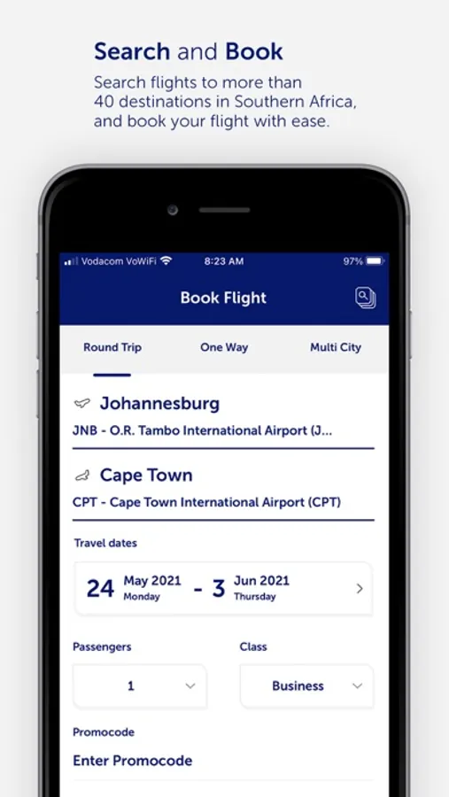 Search flights to more than 40 destinations in 11 African Countries and St Helena Island. Manage your trip with access to all the details about upcoming trips, or review details from your past trips.