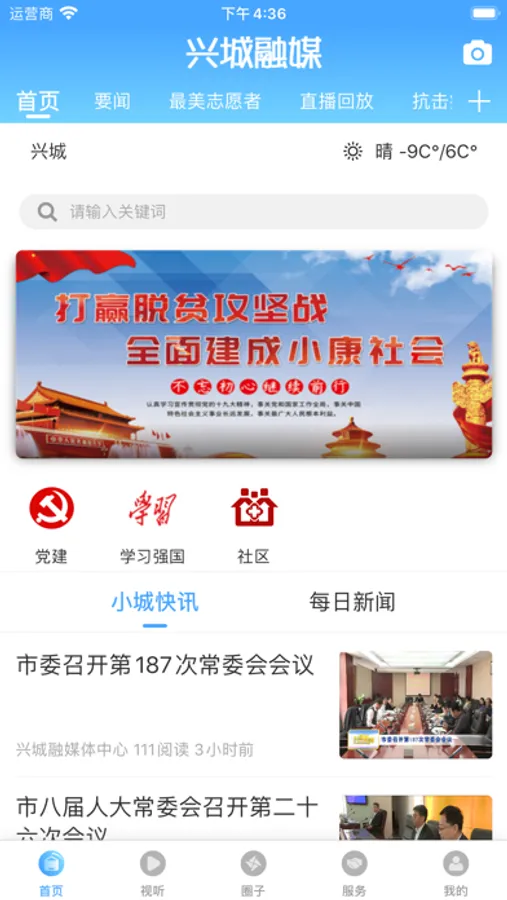 兴城融媒APP是由兴城市融媒体中心管理运营的新闻客户端,其功能除了进行广播电视的实时播放和直播外,还包括“互联网+新闻”、“互联网+政务”“互联网+服务”“互联网+民生”“互联网+商业”等内容。其中新闻频道整合中央、省市、本地以及网络媒体资源,推出文、图、影、音融合的资讯内容;政务频道设置“掌上政务”模块,打造政务矩阵,实现网上办公;服务频道通过“智慧社区”“监督平台”“行风热线”“不吐不快”等模块为群众提供便民服务和诉求平台,同时,叠加“出行助手”和“生活百科”等内容,实现查询、购物多项功能;此外还开设了“智慧党建”“文明实践”等特色版块,打造全民参与、全面分享、全民受益”的区域第一移动门户。