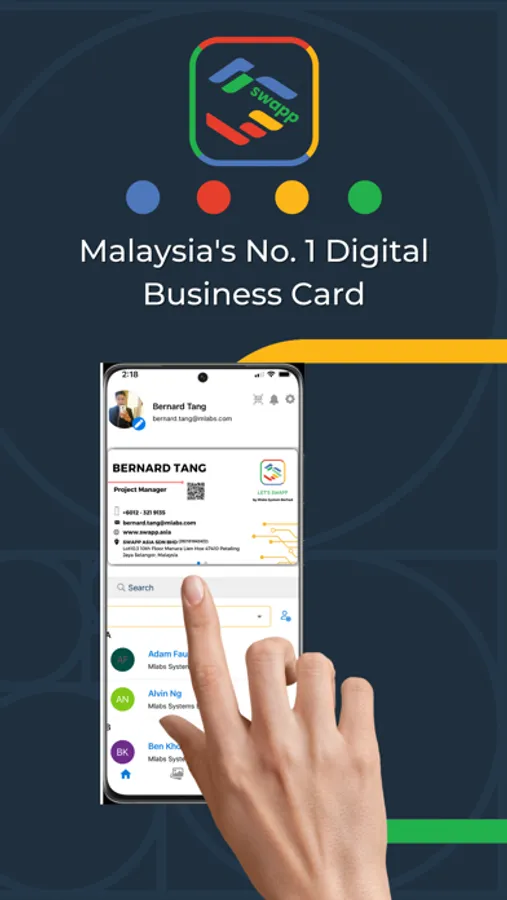 Let's Swapp is creative digital name card application that allow user create own business card and also upload paper card as storage. It also allow user to share name card via QR code or other different links like whatsapp