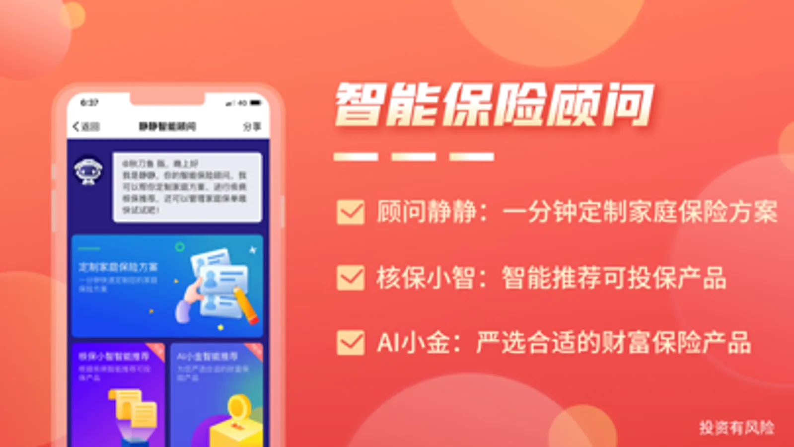 1、智能顾问静静,一分钟快速定制家庭保险方案;
