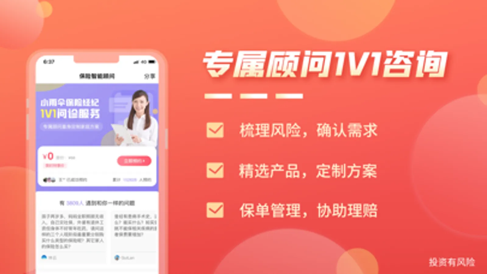 保险智能顾问是小雨伞旗下保险服务平台,由小雨伞独立研发,通过大数据分析、智能核保,为用户提供更加智能、便捷的保险服务。
