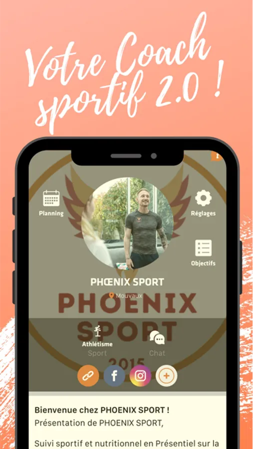 Bienvenue sur l’application PHOENIX SPORT! Coach sportif professionnel, l’application PHOENIX SPORT sera votre allié de tous les jours! Spécialiste dans le Suivi Sportif pour les particuliers, les Sportif de Haut Niveau et les entreprises, je vous propose: