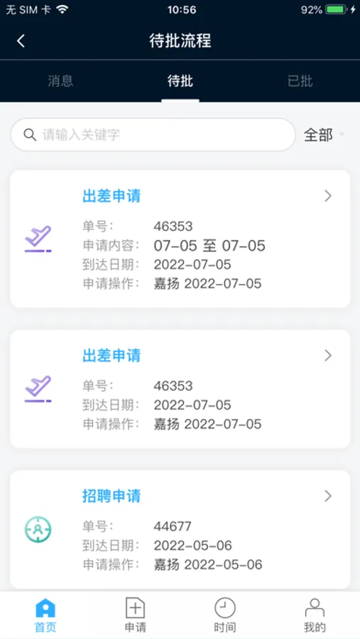 ·整合了消息提醒,流程告知,审批的一键操作页面,快捷定位员工日常操作。