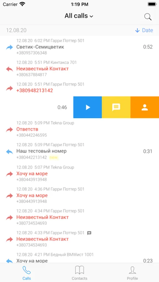 - работать с контактами и добавлять примечания.