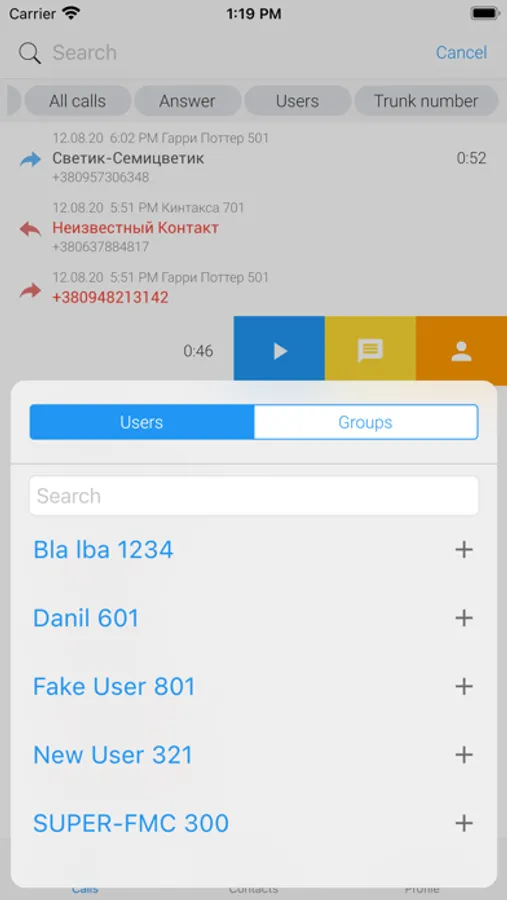 - просматривать журналы звонков, применяя удобные фильтры