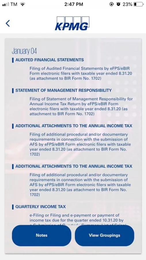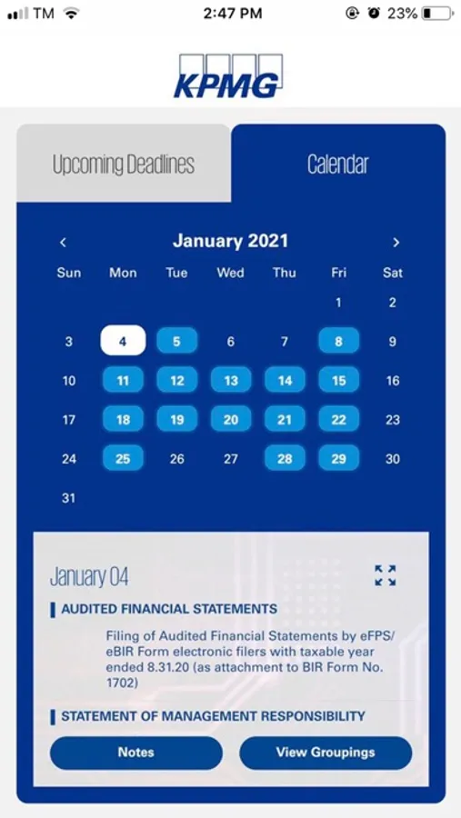 With a busy schedule, it can be difficult to keep track of your tax obligations. Through the KPMG Online Tax Calendar, you can easily check and be reminded of crucial filing dates.