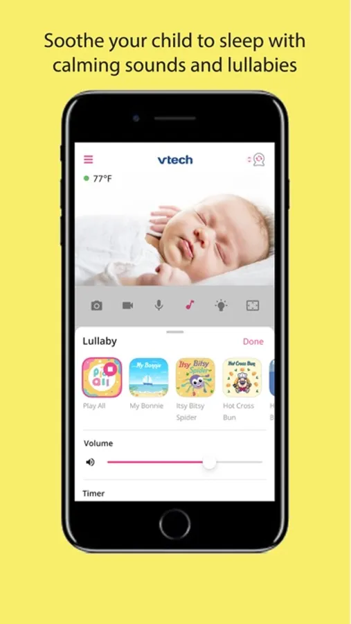 - Help calm your baby by playing melodies or say hello using 2-way talk