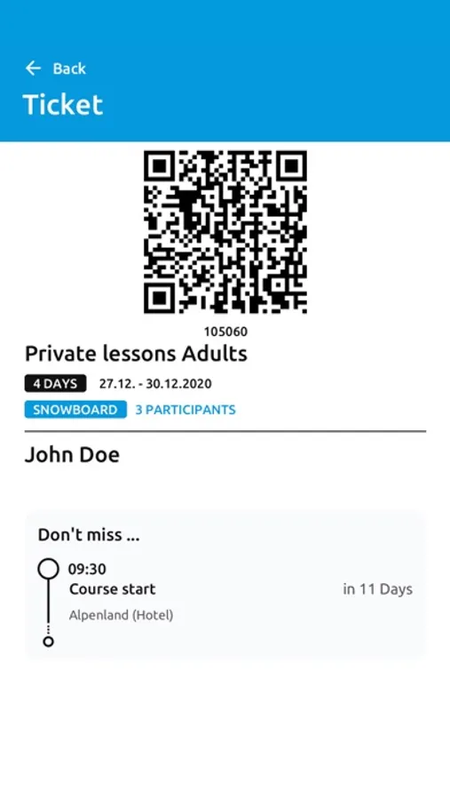 With this app, we have created a seamless customer experience for our guests - from registration to online digital copies of all course tickets purchased. You can do the course allocation online for the tickets you have purchased (digital check-in) and with the option to give short feedback after the course.