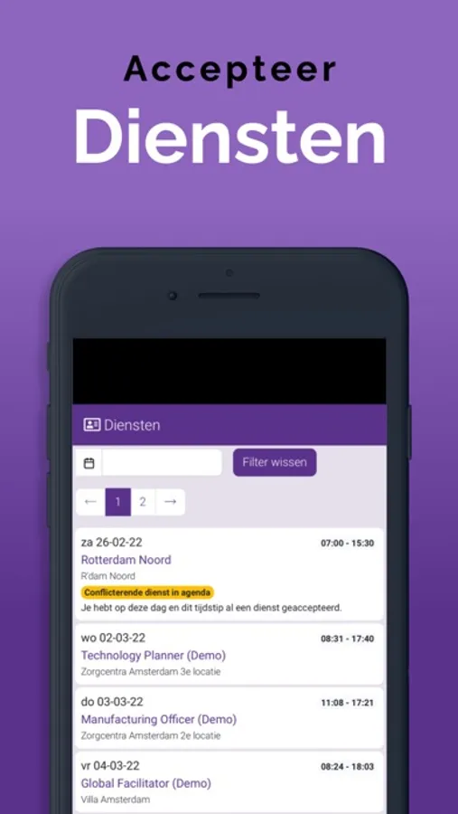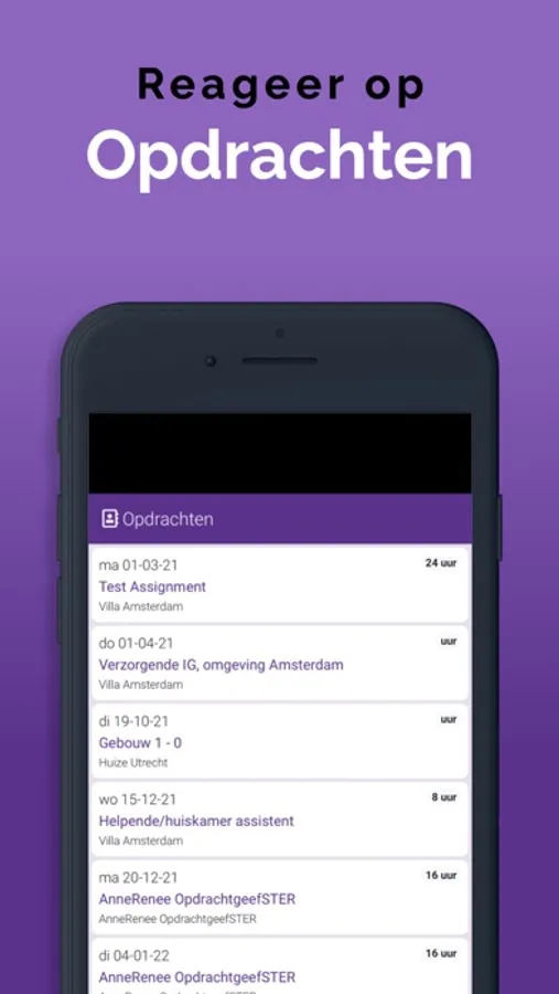 De App is gekoppeld aan het systeem waardoor informatie altijd up-to-date is, via een overzichtelijk dashboard. Bovendien komen belangrijke meldingen, als nieuw beschikbare opdrachten, via een push melding binnen op het apparaat. Zo zie je niets over het hoofd. Ook wijzigingen worden direct zichtbaar, ook in de agenda. Je bent dus altijd op de juiste plaats aanwezig.