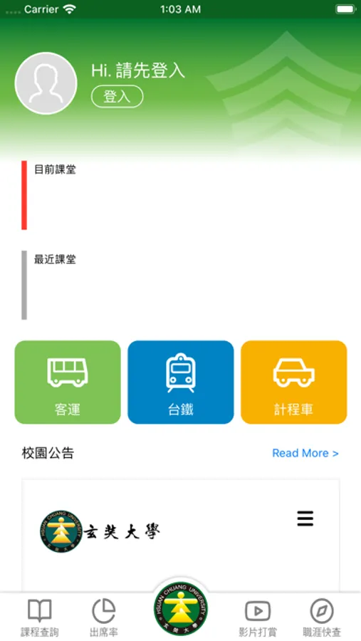 玄奘大學APP提供本校師生,課程查詢、請假、出席率查詢、影片點評及職涯快查功能。