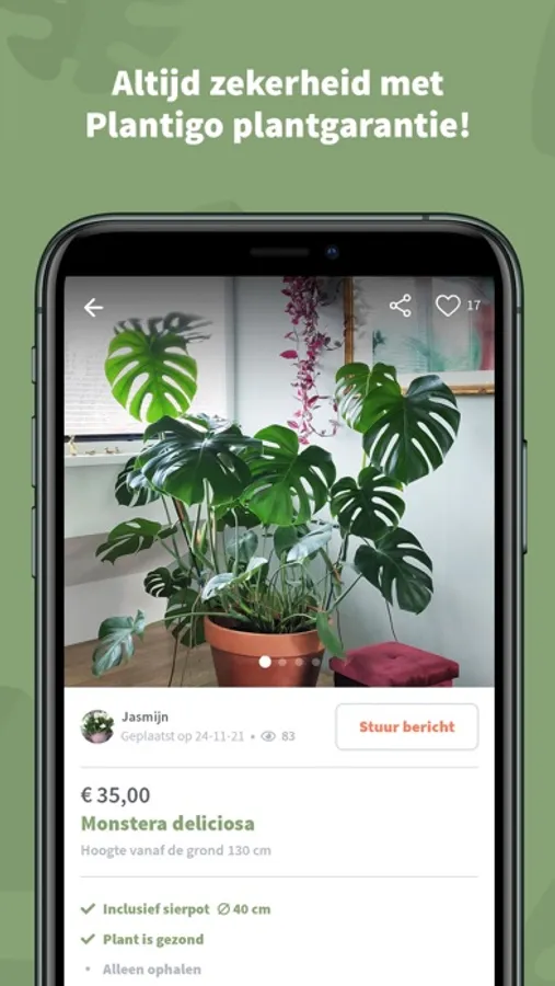 Kom via de chat in contact met andere plantenliefhebbers in jouw omgeving. Beschikbaar in Nederland en België.
