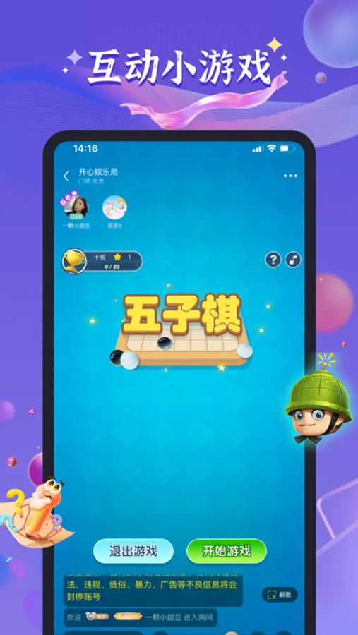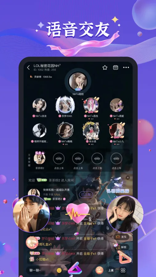 颜值美女、技术大神、才艺达人、甜美唱将等,各领域大神聚集地。一起在聊天室语音连麦K歌交友,一起约玩各种游戏组队开黑畅玩,一起畅聊树洞话题相互倾诉,一起围观真是有趣的生活动态,更多精彩等你来发现。