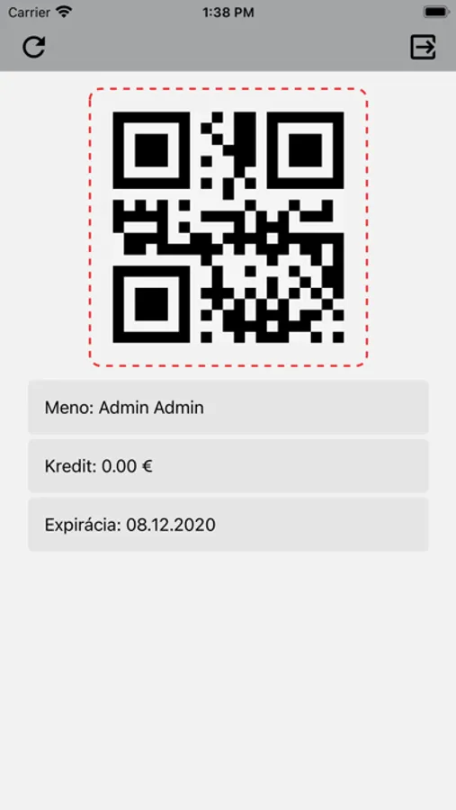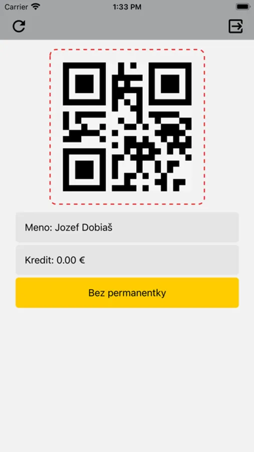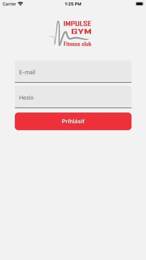 Aplikácia pre klientov Impulse GYM, prihlásený užívateľ má prehľad o svojom aktuálnom kredite.