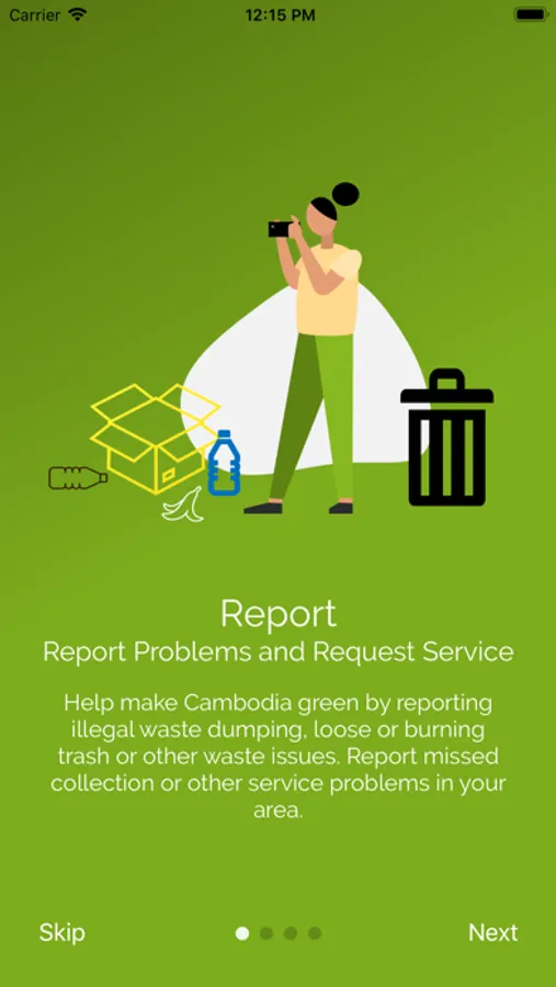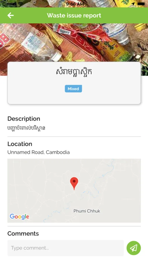 Green Cambodia is an easy-to-use mobile application for real-time citizen reporting of waste management problems. A