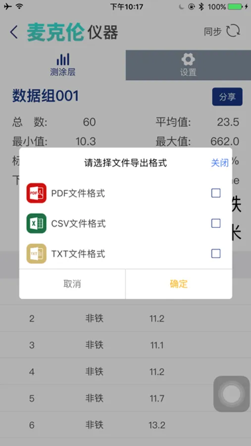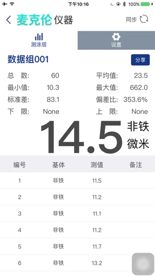 麦克伦仪器是一款可以通过蓝牙连接实时显示测厚仪数据,并可显示测量基体、实时计算最大最小等值,方便快速判断涂层状态!