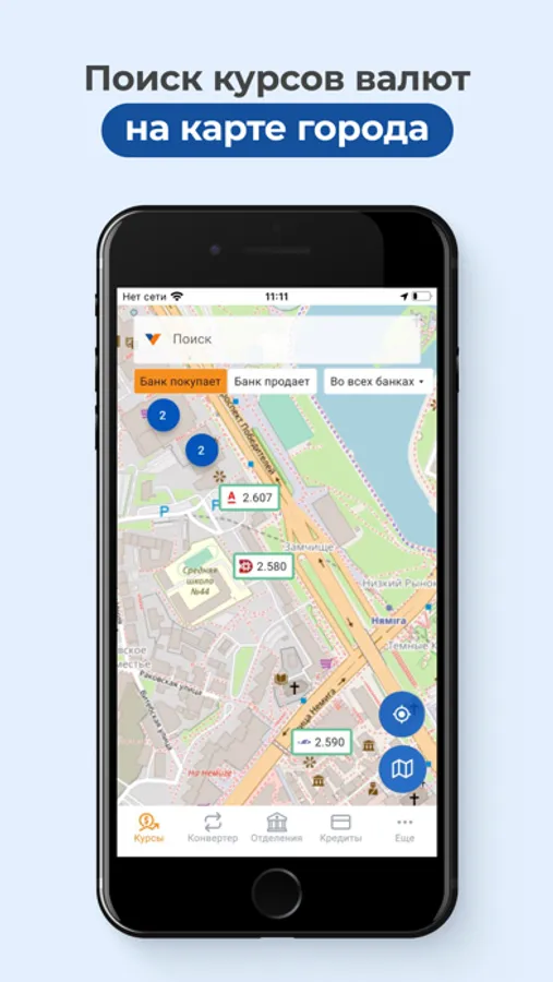 Приложение дает возможность сортировать по курсу продажи или покупки валюты, по банку, расстоянию. Находить ближайшие отделения, обменные пункты и банкоматы.