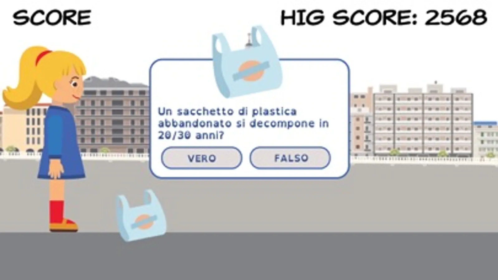 Giocando con i due personaggi bisogna rispondere a domande relative alle tempistiche di smaltimento di alcuni oggetti è si può imparare come smaltire i diversi materiali selezionando il contenitore corretto dove inserirli.