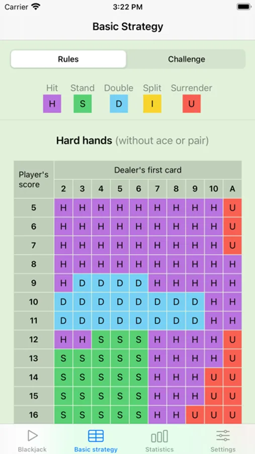 This Basic Strategy gives you the best move (hit, stand, split, double or surrender) based on the cards drawn. This method reduces the casino's advantage from 10% to less than 1%.