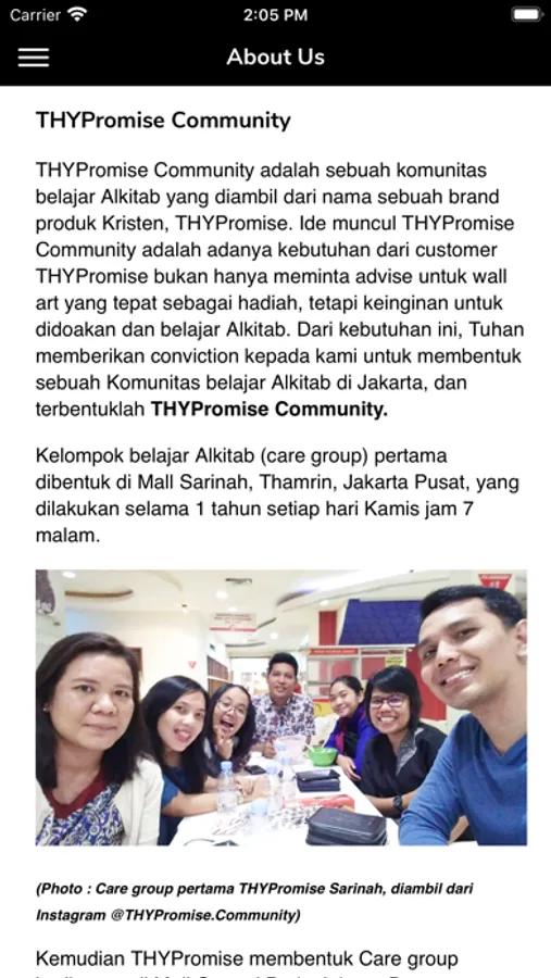 Melalui Aplikasi ini, THYPromise Community menyediakan konten diantaranya : Renungan Pagi, Pendalaman Alkitab, Pelajaran Nubuatan, Video Kesaksian, Kutipan-kutipan Alkitab, Podcast Belajar Alkitab, Akses Buku Digital Rohani, Permintaan Doa, Ucapan Pujian Syukur, Informasi Care Group, dan Pelajaran - pelajaran Alkitab lainnya yang akan bertambah diwaktu mendatang.