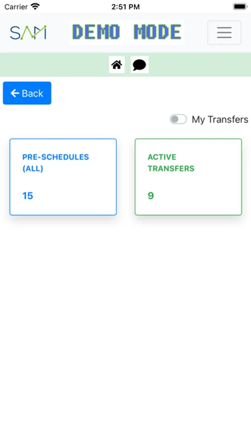SAM Portal allows you to view the dashboard and review transfers - prescheduled, active and completed. You can also request a transfer from the Portal.