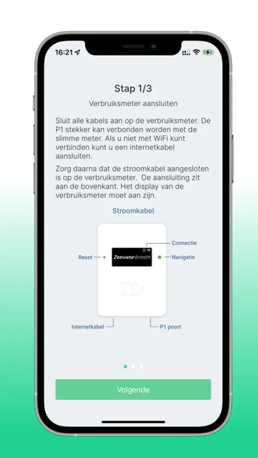 Sluit de verbruiksmeter aan op je slimme meter en koppel deze eenvoudig met de app. Let op: de app is alleen te gebruiken in combinatie met de verbruiksmeter van Zeeuwsestroom.