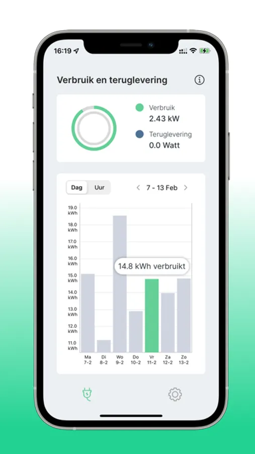 De Zeeuwsestroom app geeft je direct inzicht in je actuele energieverbruik! Ook laat de app je energieverbruik van de afgelopen week zien. Ook is de teruglevering te volgen. Het verbruik is inzichtelijk per uur en per dag.
