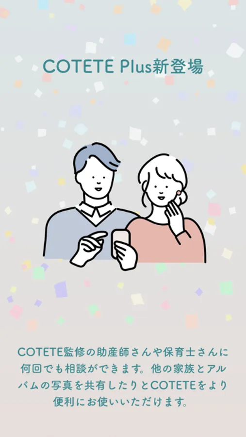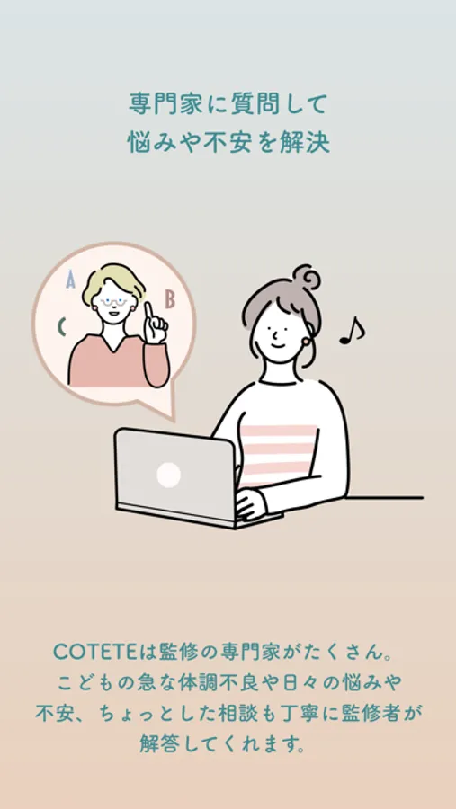 妊活から子育てまで、すべてのママさんたちの体調管理やなやみ、思い出管理をかんたんにCOTETE(コテテ)で解決できます。