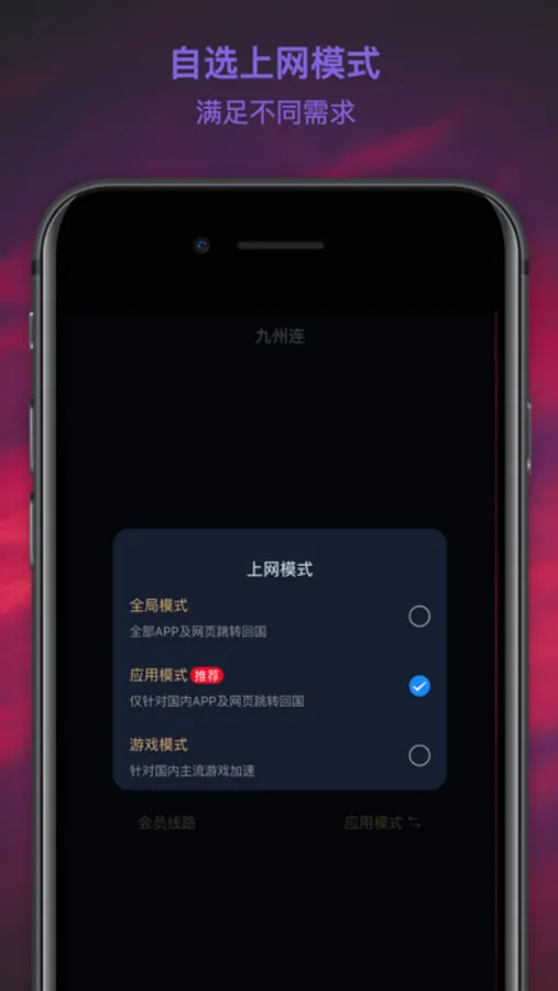 In the application mode, only access to the domestic network is accelerated, and it will not affect your original network performance.