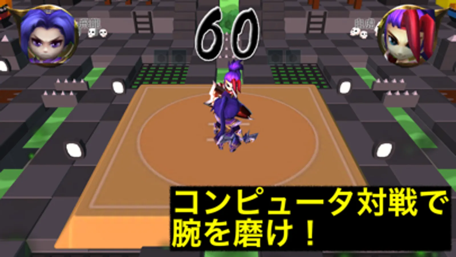 相撲(すもう)の土俵(どひょう)をタップして押し出す、または転がせば勝ち