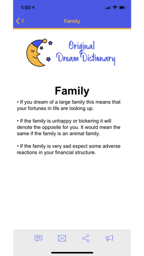 The ORIGINAL Dream Dictionary! You'll want to keep this handy app by your bedside at all times. It includes a huge listing of items that could appear in your dreams and gives you the definition of what those items might mean to you in your waking world. Happy Dreams!