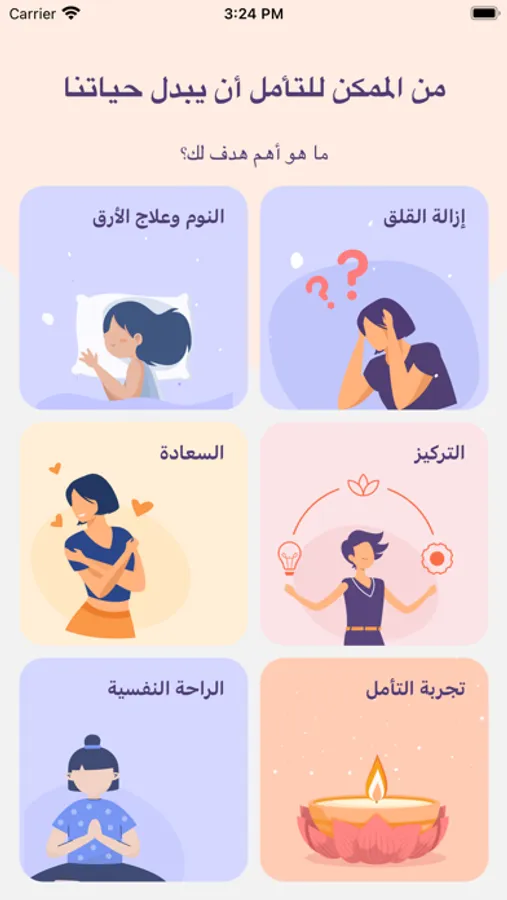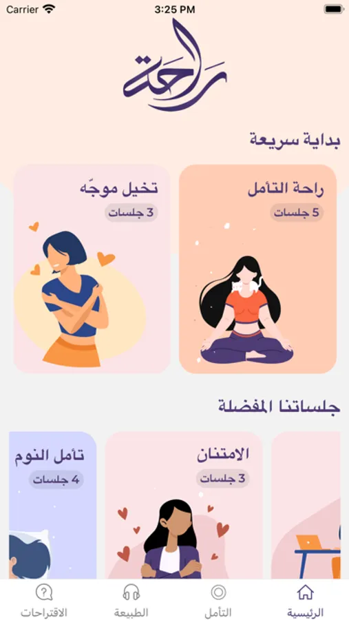تمرينات تأمل موجهة تساعدكم على الشعور بالسعادة وتخفيف التوتر، تحسين التركيز، إزالة الاكتئاب، والنوم العميق. تطبيق راحة يسمح لكم بالاسترخاء والتأمل، مع تسجيلات صوتية من مرشدات التأمل الموجه. تم تصميم البرنامج بشكل يناسب المبتدئين بالتأمل وأيضاً ذوي الخبرة بالتأمل.