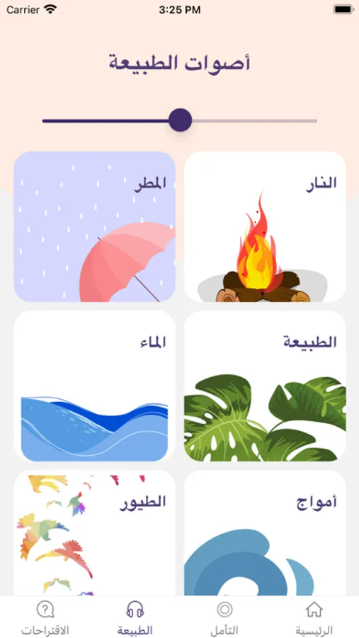 - أصوات طبيعة تساعد على التأمل الغير موجه.