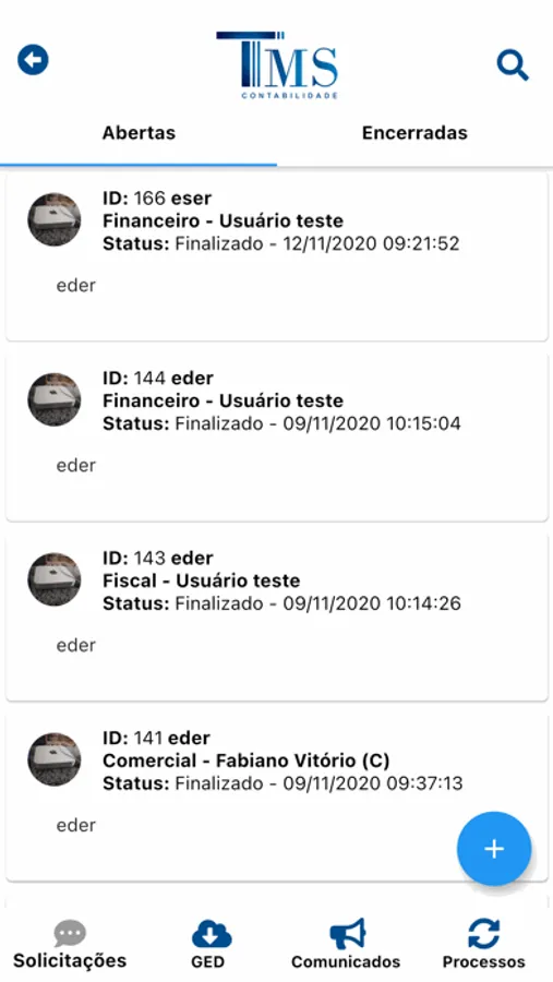 1 - Gerenciamento de Solicitações tanto pelo cliente como pelo escritório contábil;