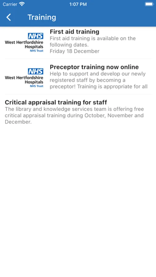 An app for the general public, as well as patients, their relatives, carers and of course the staff of West Hertfordshire Hospitals NHS Trust to keep up to date with the latest news, organisational alerts and notices, training and job opportunities.