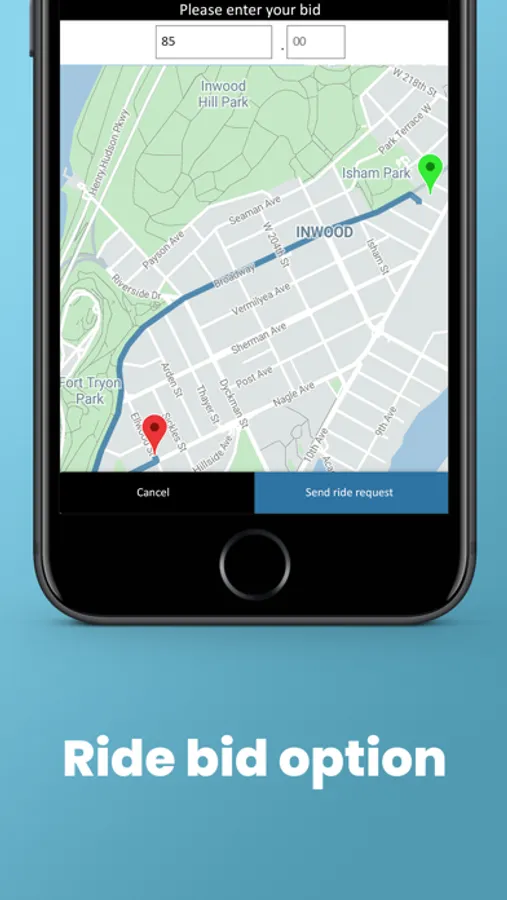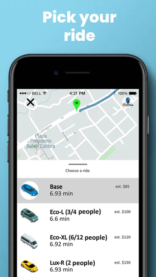- Once the ride is confirmed, a notification is sent to the passenger showing some information such as vehicle description, ride estimated cost, distance and time.