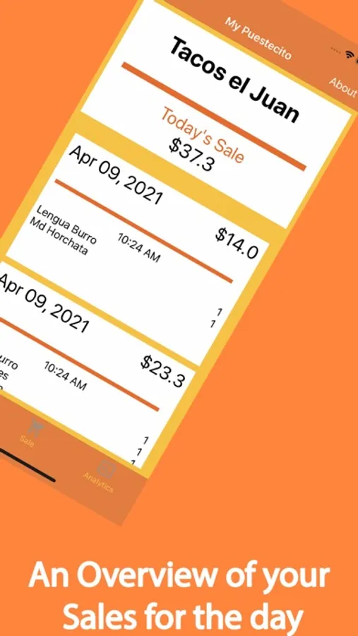 With an easy to use interface, My Puestecito give you the ability to quickly and effectively track down how many items you sold on any one specific day as well as the times the items were sold.