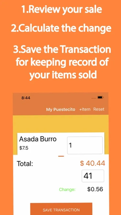 My Puestecito is designed to help you keep track of your businesses, products, and sales. In a simple easy to use design, you are able to easily see the products and their prices. When taking the order of a client, you can easily and quickly see the sum total of the order. When ready to charge your client, you can verify the order and see only the products being sold and inclusively calculate the change to return to your client or if they are missing to complete the purchase.