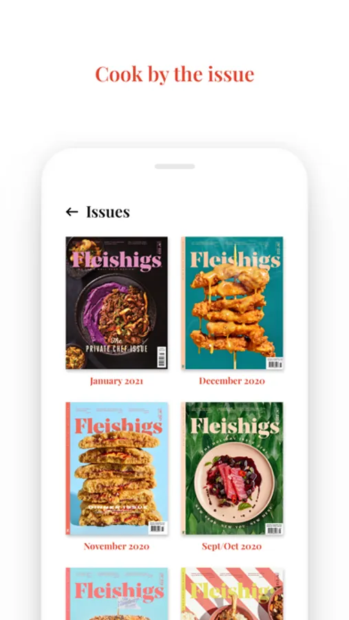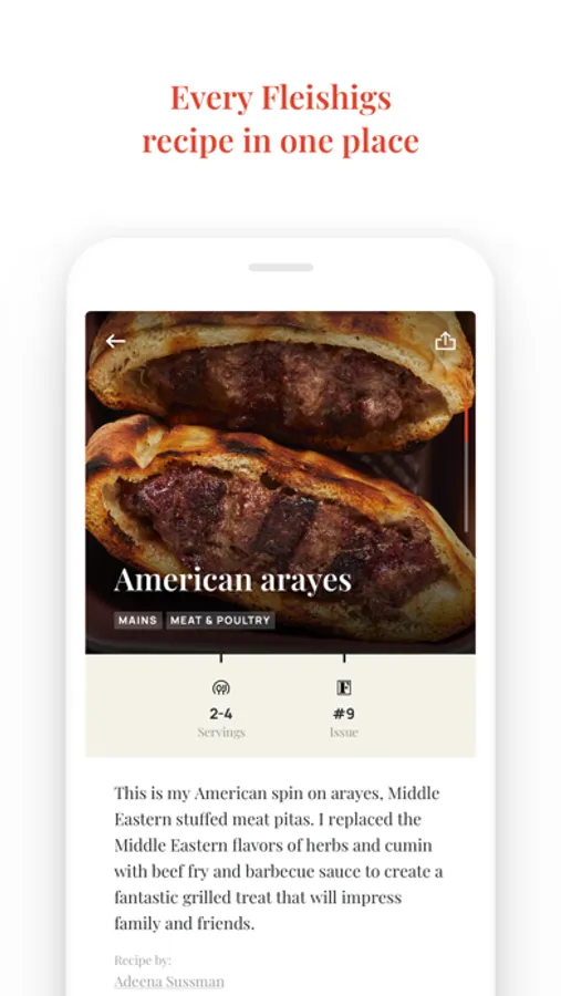 Introducing the Fleishigs app, a beautiful place where you can conveniently find every recipe from every issue organized by item, author, theme, and meal type, with easy to follow step by step instructions and visuals.