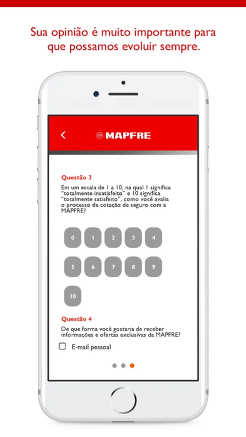 Imagine poder opinar e contribuir com ações extremamente importantes da MAPFRE, como: fazer parte de um desenvolvimento e testes de um novo produto, sugerir melhorias nos processos, avaliar uma oferta diferenciada de serviços, receber em primeira mão a intenção da nova campanha publicitária.