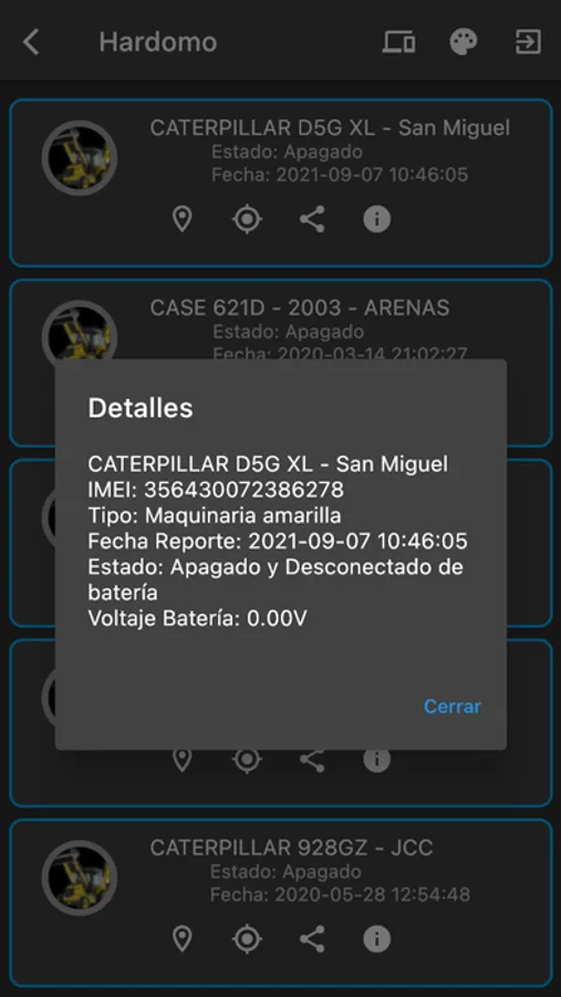 App para monitoreo de vehículos y maquinaria que cuentan con el servicio de Hardomo