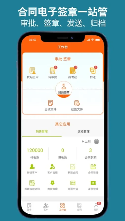 微签,不只是电子签章,它独树一帜地涵盖合同审批、合同签章、合同管理、合同收款、合同提醒、合同归档,甚至合同的签署方——客户管理也囊括其中。