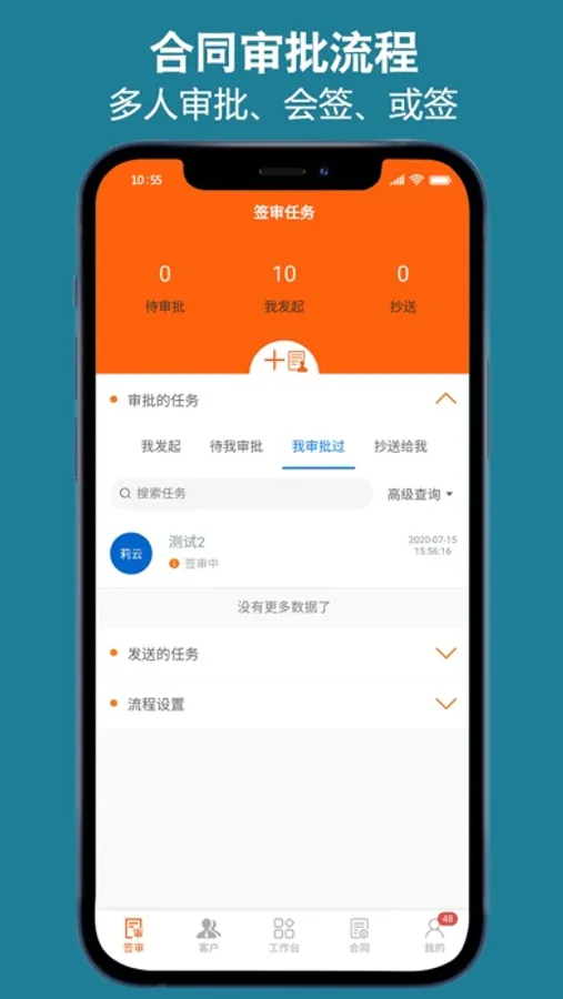 解决办公流程中最常用的电子合同文件审批,灵活的流程设置,支持多人审批、会签、或签。
