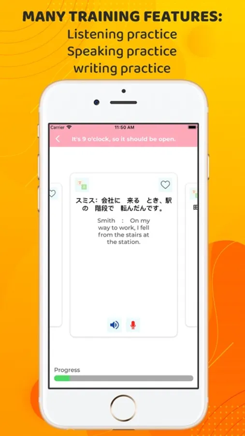 With more than 60 Japanese conversations and 1800 basic Japanese conversation sentences, this app will help you improve your communication ability