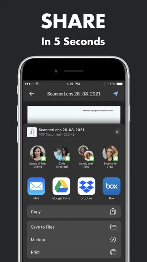 Anywhere and anytime, you can feel just like having a handy physical scanner in your pocket. The quality of the scanned files is enhanced, and your files can be instantly available on all your devices after uploading files to cloud services.